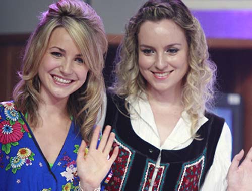 魏丽和刘思文向观众打招呼