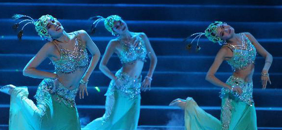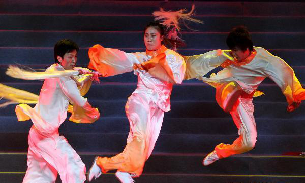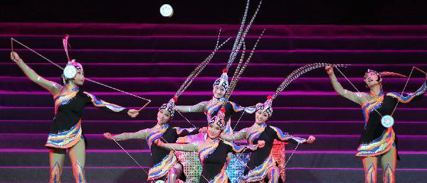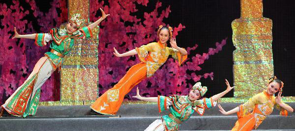2010年11月24日,在位于俄罗斯首都莫斯科的克里姆林宫大剧院,中国艺术家表演舞蹈。当日,俄罗斯“汉语年”闭幕式晚会在这里举行。俄罗斯“汉语年”是中国和俄罗斯两国政府2009-2010年期间互办“语言年”这一大规模双边项目的组成部分。