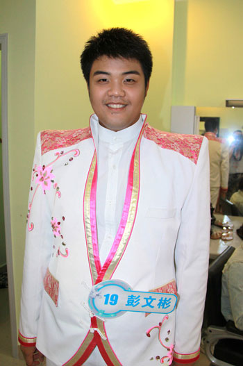在庆功宴的现场,记者遇到了人称“泰国小可爱”的彭文彬,别看彬彬走的是可爱路线,但实际上他可是个身高186的“彪形大汉”。在一段时间的接触后不难发现,彭文彬是一个特别讨人喜欢的男孩,他在陌生的环境中总是能迅速地与周围人打成一片,不是教你一段“泰式英语”,就是给你来一个“泰式按摩”。对于朋友,他又非常重感情,在其他几个亚洲选手离开的时候,很难想象这样一个壮小伙会哭得那么伤心,也正是因为朋友们对他的支持和鼓励,让彭文彬一路过关斩将,最后以优异的表现获得一等奖。以下是一段关于他的访谈。