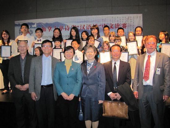 中国驻温哥华总领事刘菲,教育领事薛浣白,第43学区高贵林教育局主席Tom Grant先生,高贵林孔子学院副校长Robert Lajoie先生,加拿大中文学会会长陈山木博士,著名时事评论员丁果先生等嘉宾出席了闭幕仪式,并为获奖选手颁奖。
