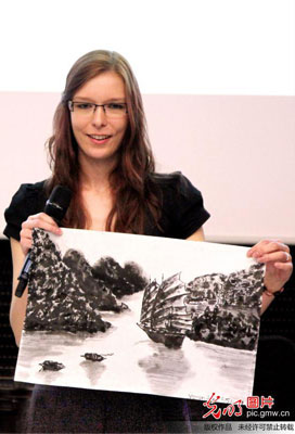 2013年5月9日,选手在展示其现场创作的中国画。