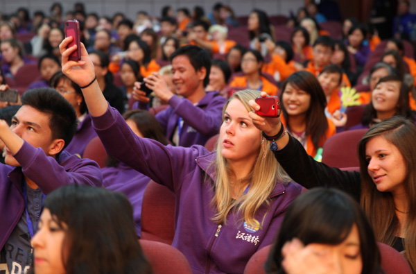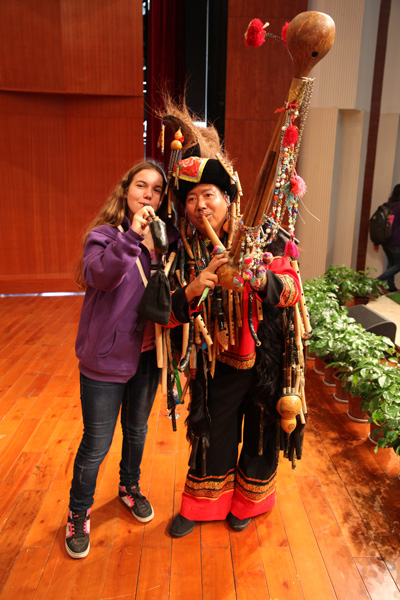 值得关注的是,一位身着少数名族服饰的“民间艺术家”为大家带来的精彩民间乐器表演。在他的手里树叶、烟斗、盒子都变成了精美的乐器。他用这些日常用品演奏出了一曲曲动人的旋律,深得选手们喜爱。演出后,选手们纷纷走上台前来争相与艺术家合影留念。下午,选手们将迎来第四场比赛“绽放彩云南”创意插花比赛。