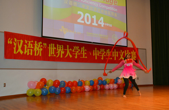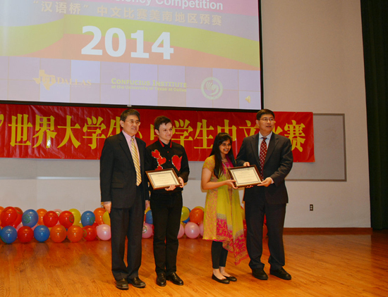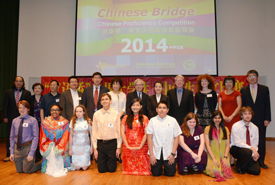 2014年4月27日,第十三届“汉语桥”世界大学生中文比赛、第七届“汉语桥”世界中学生中文比赛美南赛区预赛在德州大学达拉斯分校人文学院演艺大厅内完美举行。