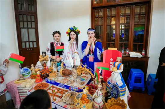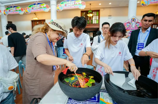 “和美中国”展区通过金石传拓、京剧等互动体验,生动展现中华传统文化的深厚底蕴;“河海津韵”展区集中展示杨柳青年画、面塑等非物质文化遗产,彰显天津独特的地域文化魅力;“上合风采”展区汇聚上合组织成员国的特色手工艺品、民族服饰等文化元素,呈现多元文明交流互鉴的精彩画卷。