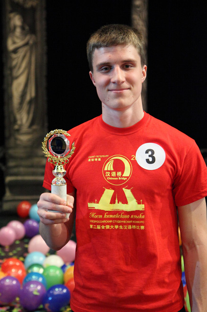 经过激烈的角逐,前三名分别由圣彼得堡大学的蒋孝文А.Кислов、莫斯科国际关系学院的博罗金Б.Бородин和布里亚特国立大学的多而日耶娃О.Доржиева获得。他们不仅赢得了丰厚的奖品和国家汉办提供的奖学金,而且还将代表俄罗斯赴华参加世界大学生汉语桥比赛。优胜奖得主分别是圣彼得堡大学的梅态艳Т.Миронова和远东联邦大学的先佐娃 А. Сенцова;最佳知识奖及最佳演讲奖则颁给了圣彼得堡大学的蒋孝文А.Кислов和莫斯科国际关系学院的博罗金Б.Бородин;最佳团队奖落入了远东代表队囊中。
