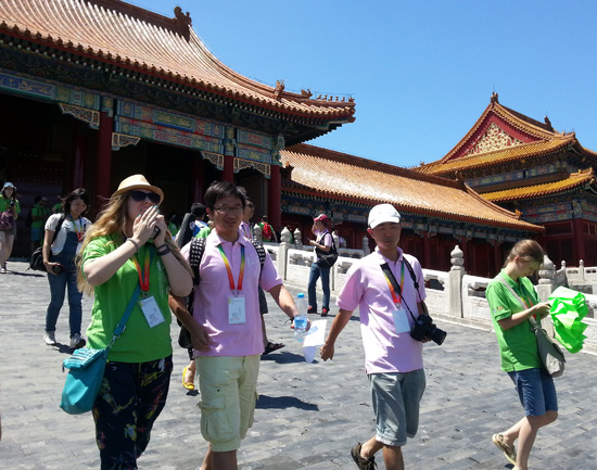 参观过程中,选手们一边聆听导游的细心讲解,细细询问身边建筑物的来历以及用途。一边纷纷举起手中的相机,与这些大气磅礴的宫殿合影留念。