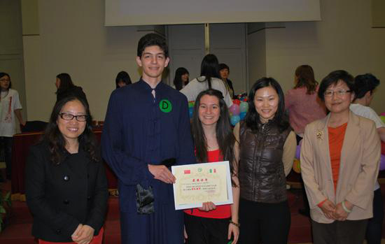 两位选手与领队中方院长带队教师及颁奖嘉宾合影