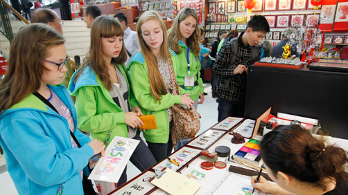 “汉语桥”选手秀水街体验购物