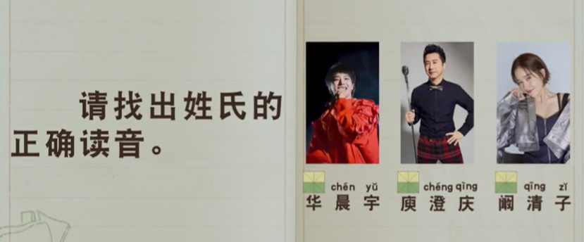请找出姓氏的正确读音。 ()chén yǔ ()chéng qìng ()qīng zǐ huā huà huá yǔ yu yú kàn hǎn kǎn