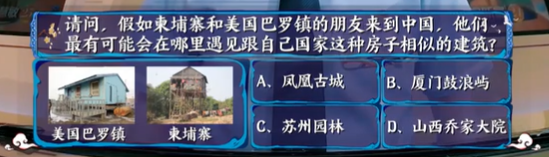 请问,假如柬埔寨和美国巴罗镇的朋友来到中国,他们最有可能会在哪里遇见跟自己国家这种房子相似的建筑?