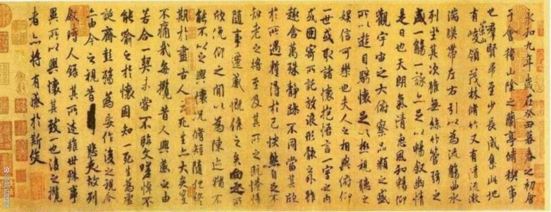 这幅图片呈现的是东晋著名书法家王羲之的传世名作《兰亭序》。以下最适合形容这种书法风格的成语是( )。
