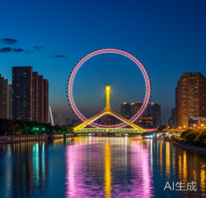 天津的夜晚非常美丽,海河像城市的会客厅一样,而 “天津之眼” 摩天轮在海河上( )地转动着。