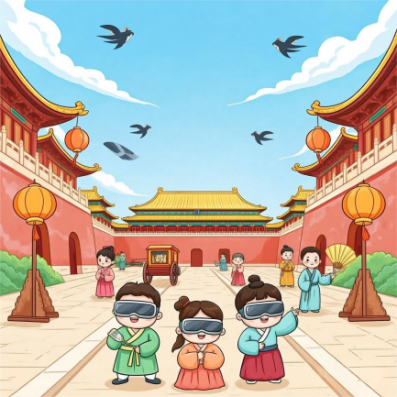 VR 课堂中,同学们 “( )” 到唐朝的长安街,体验唐代诗人的生活。
